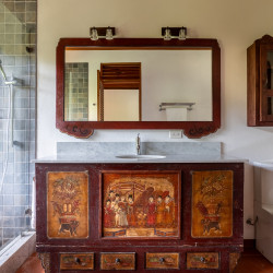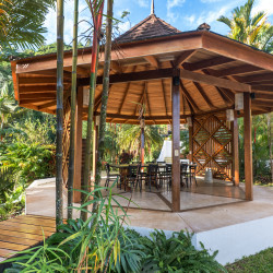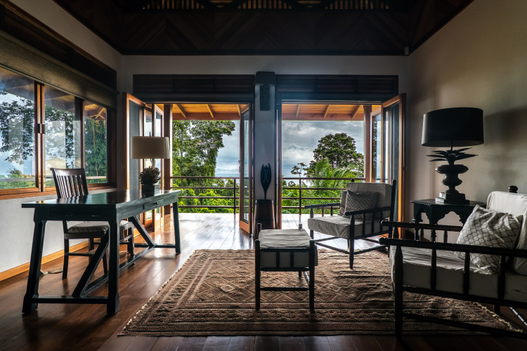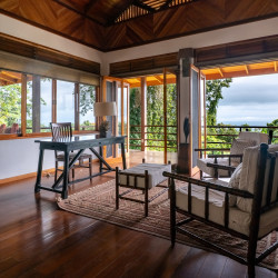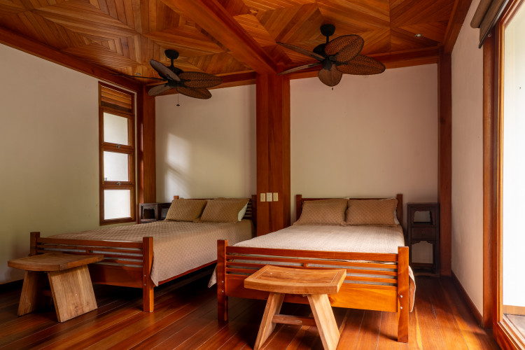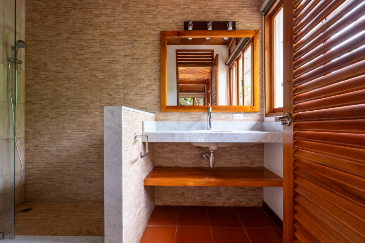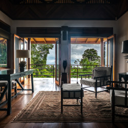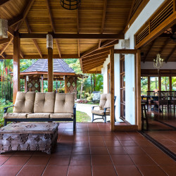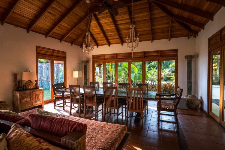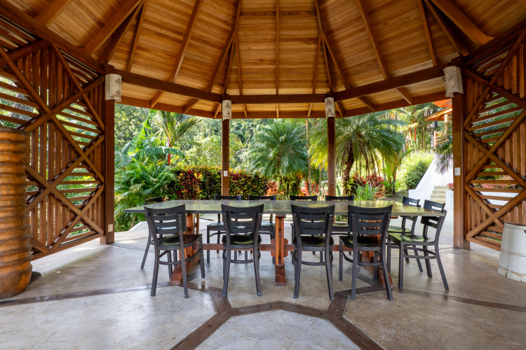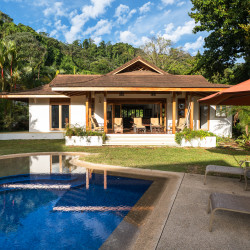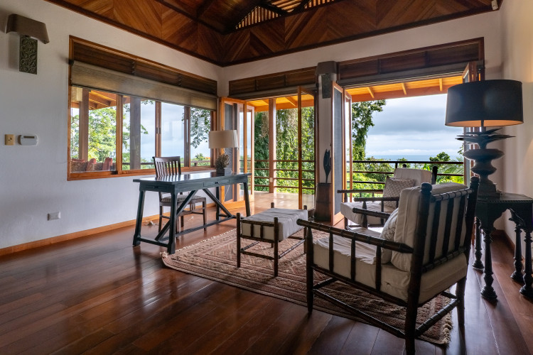Tucked away in the heart of the jungle with sweeping ocean views, this authentic Carribbean villa offers an unparalleled escape near Cahuita National Park and lively Puerto Viejo. Featuring six beautifully designed bedrooms, each with its own private bathroom, this retreat also includes expansive social areas and a modern, fully equipped kitchen. Outside, a stunning swimming pool encircled by vibrant tropical gardens invites you to relax and bask in the tranquil setting. For those seeking both seclusion and excitement, the villa provides easy access to hiking trails, pristine beaches, and a private 9-hole golf course—perfect for a leisurely round amidst the lush landscape. This Caribbean haven blends comfort, adventure, and natural beauty for an unforgettable vacation!